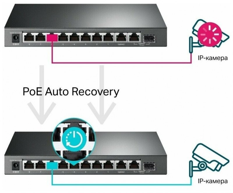 - Количество портов PoE/PoE+ PSE: 8 портов IEEE 802.3at (PoE+), IEEE 802.3af (PoE)