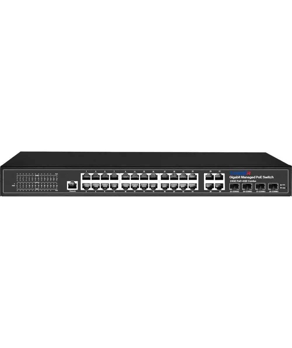 Коммутатор Trassir TR-NS24284C-400-24PoE (L2) 24x1Гбит/с 4xКомбо(1000BASE-T/SFP) 24PoE 400W управляемый
