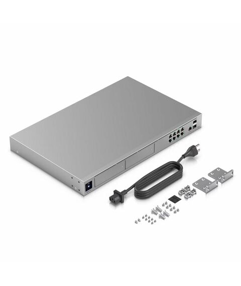 | Особенности | Работает как маршрутизатор, коммутатор или контроллер. LAN - 8x 1G RJ45, 1x 10G SFP+. WAN - 1x 2.5G RJ45, 1x 10G SFP+. Сенсорный дисплей 1.3". Возможность подключения резервного питания USP-RPS DC-in 11.5V/8.7A |