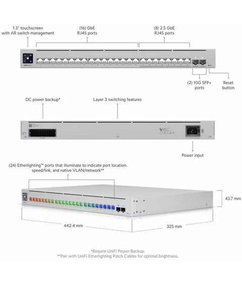 | Программное обеспечение | Для управления требуется приложение UniFi Network 8.0.24 и выше. Резервирование питания - UniFi Power Backup |