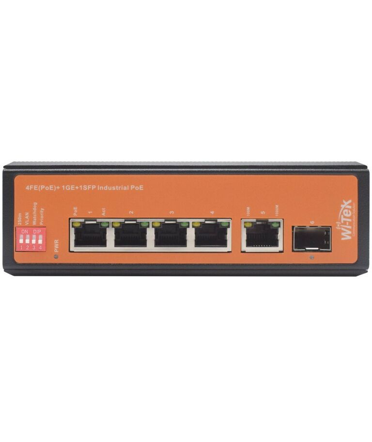 - Промышленный неуправляемый коммутатор WI-PS206GF-I предназначен для применения в индустриальных сетях предприятий. Коммутатор оснащен 4 портами 10/100Base-Т с поддержкой PoE 802.3at/af, 1 портом 1000Base-T, 1 портом 1000Base-X SFP. Защищен от грязи, пыли и влаги, устойчив к электромагнитным помехам, нестабильному входному напряжению и сложным климатическим условиям.
