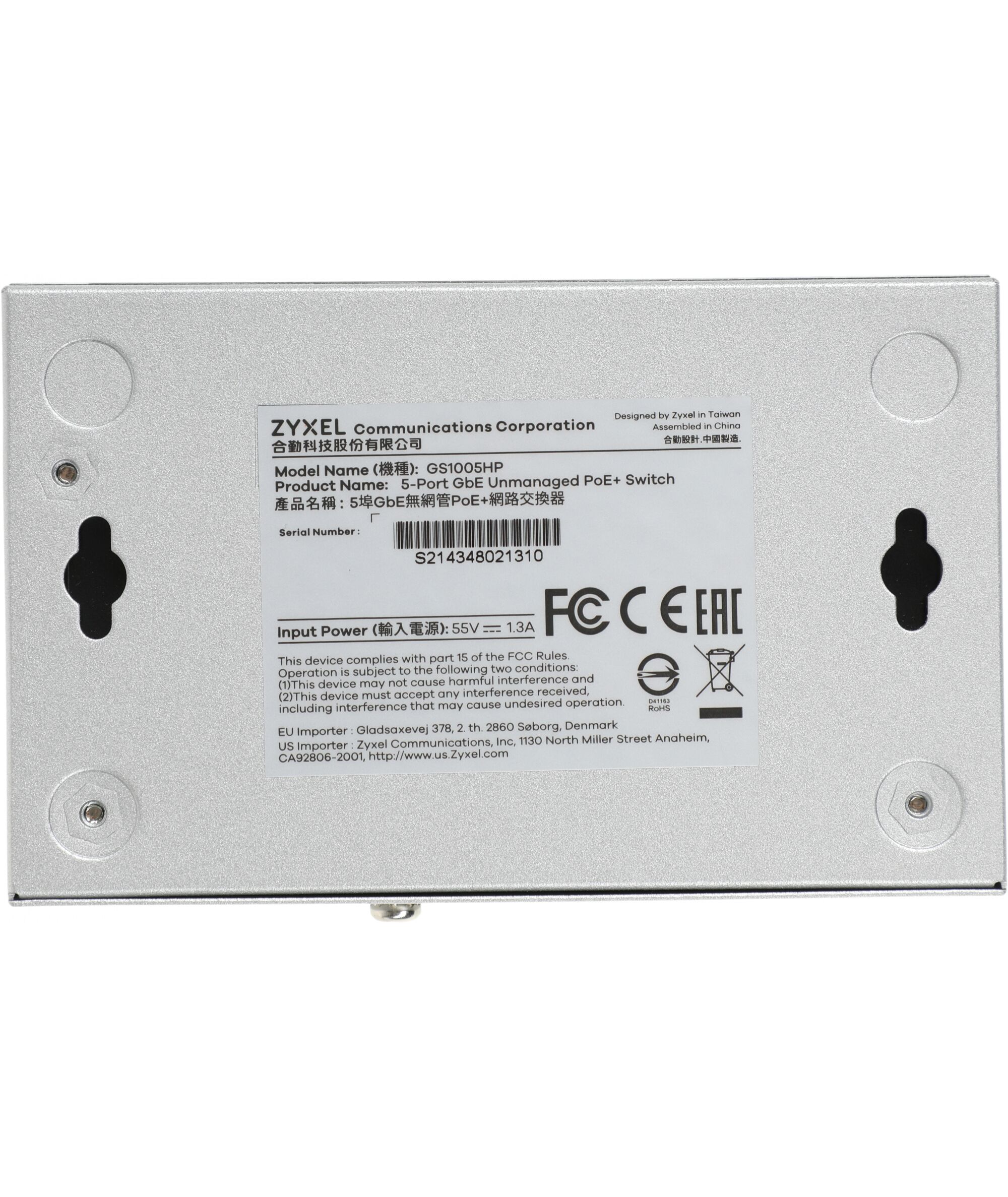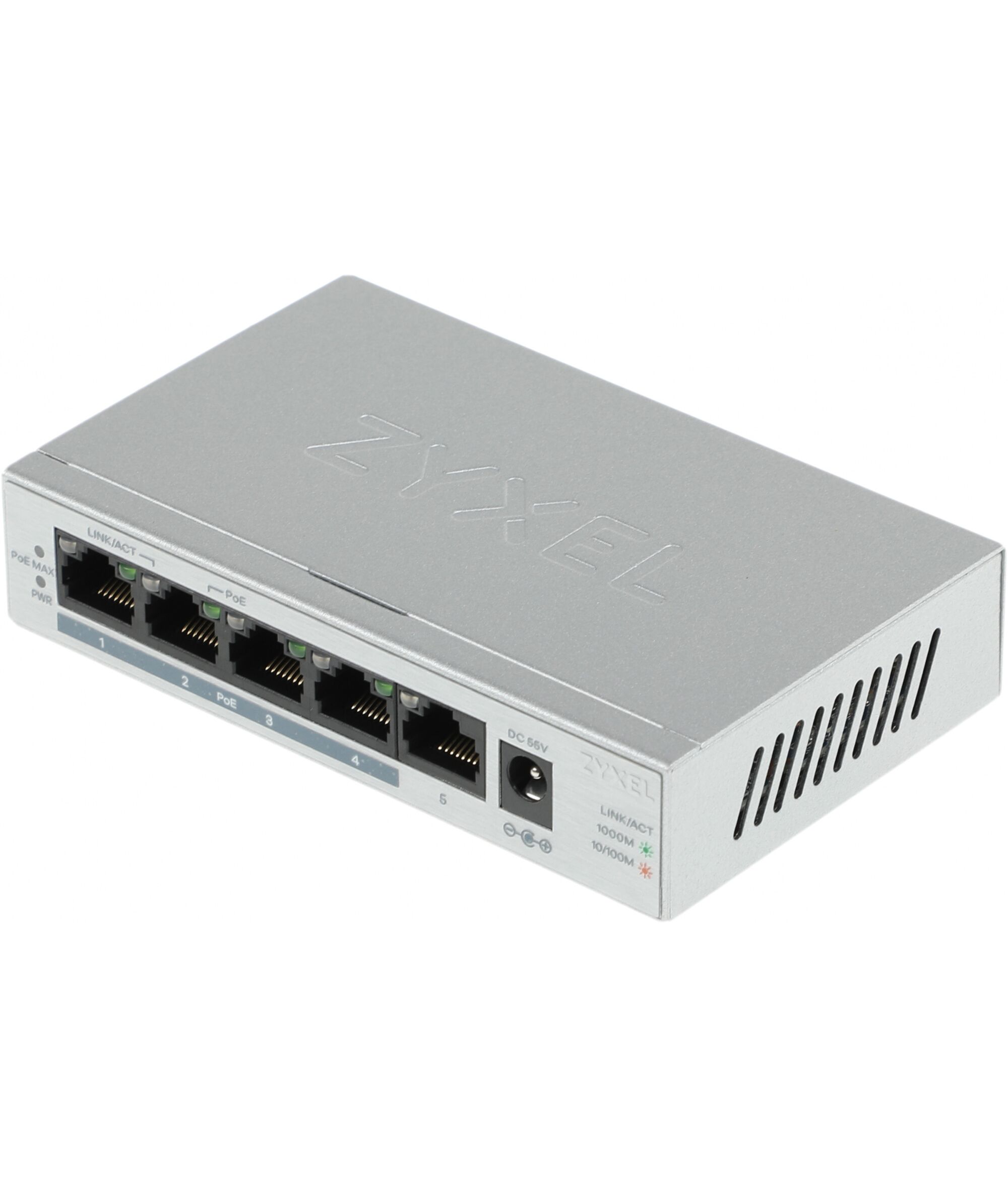Коммутатор ZyXEL GS1005HP-EU0101F (L2) 5x1Гбит/с 4PoE+ 60W неуправляемый