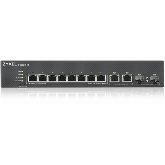 Коммутатор ZyXEL GS2220-10-EU0101F NebulaFlex Pro Hybrid L2, 19", 8xGE, 2xCombo (SFP / RJ-45), silent, standalone / cloud management