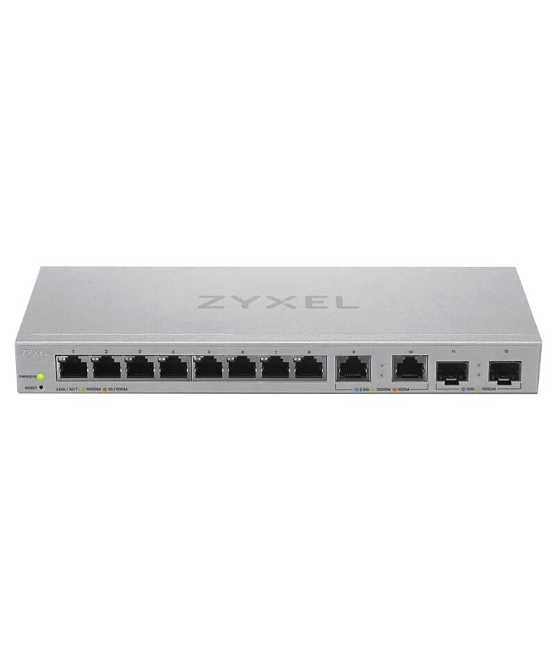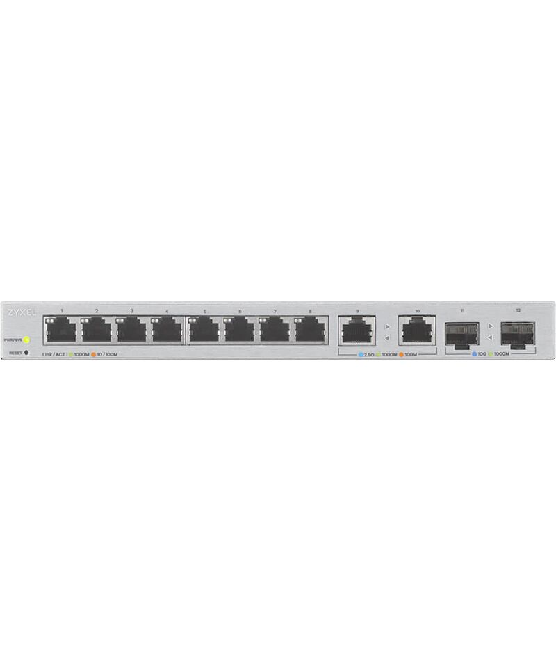 Коммутатор ZyXEL XGS1210-12-ZZ0102F Multi-Gigabit Smart L2, 8xGE, 2x1/2.5GE, 2xSFP+, Desktop, Silent