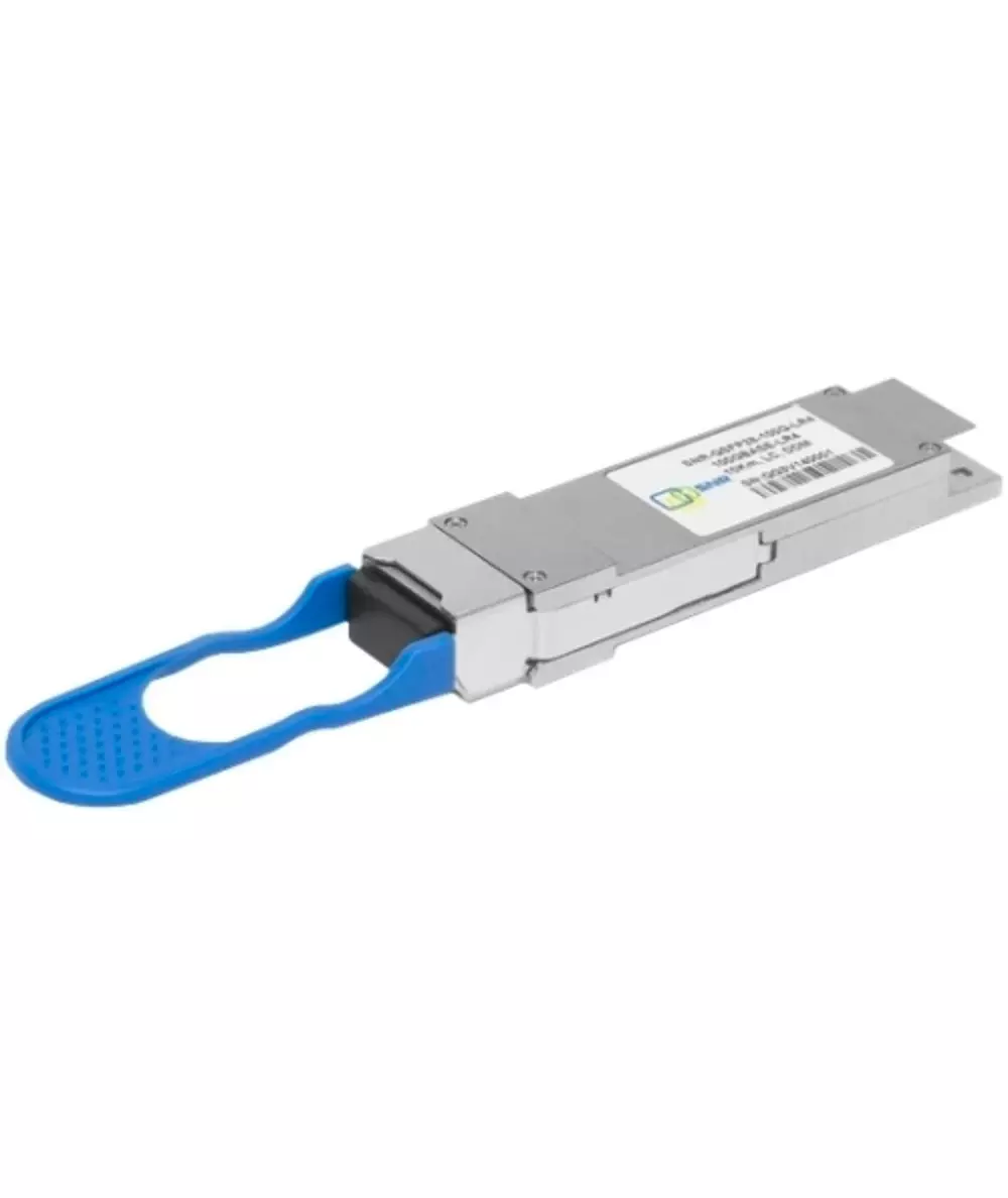 Компактный двухволоконный приемопередающий оптоэлектронный модуль (трансивер) форм-фактора QSFP28 с поддержкой «горячей» замены и напряжением питания 3,3В. Приемопередатчик предназначен для работы со скоростью передачи данных до 100 Гбит/с, что соответствует QSFP28 MSA. В качестве источника излучения используется EML-лазер, в качестве приемника – PIN-фотодетектор. Максимальная дальность связи – 500 м по одномодовому (9/125 мкм) оптическому волокну G.652.