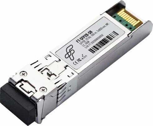 FT-SFP28-SR – модульный компактный оптический трансивер с поддержкой «горячей» замены. Приемопередатчик предназначен для работы со скоростями передачи данных до 25.78 Гбит/с. Максимальная дальность связи 100 м по 50/125 мкм многомодовому волокну.