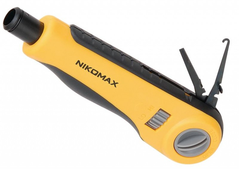 Инструмент для заделки витой пары Nikomax NMC-3640RB ударного типа, 2 уровня регулировки силы удара, крепление Twist-Lock, нож для кроссов типа 110 в комплекте
