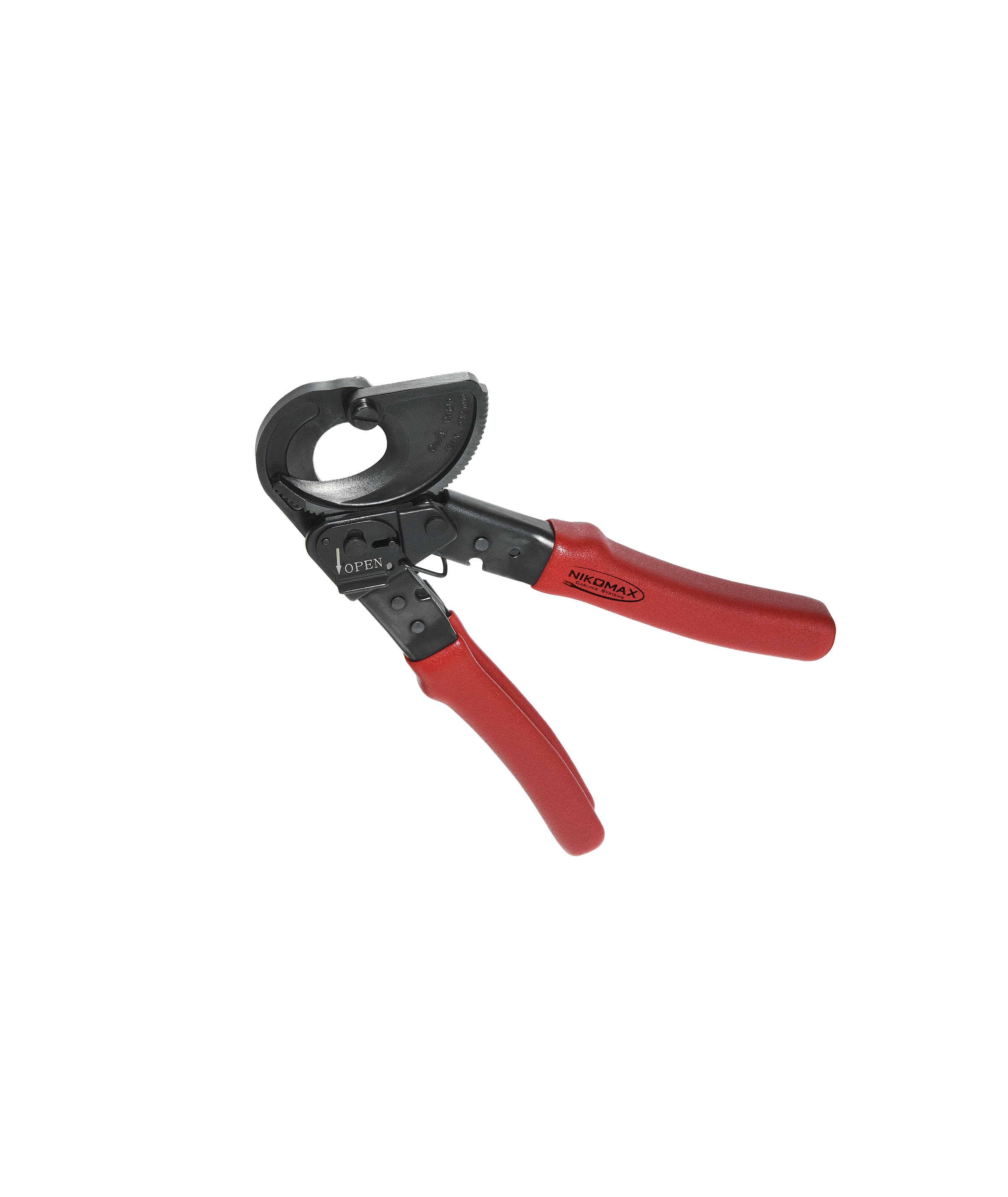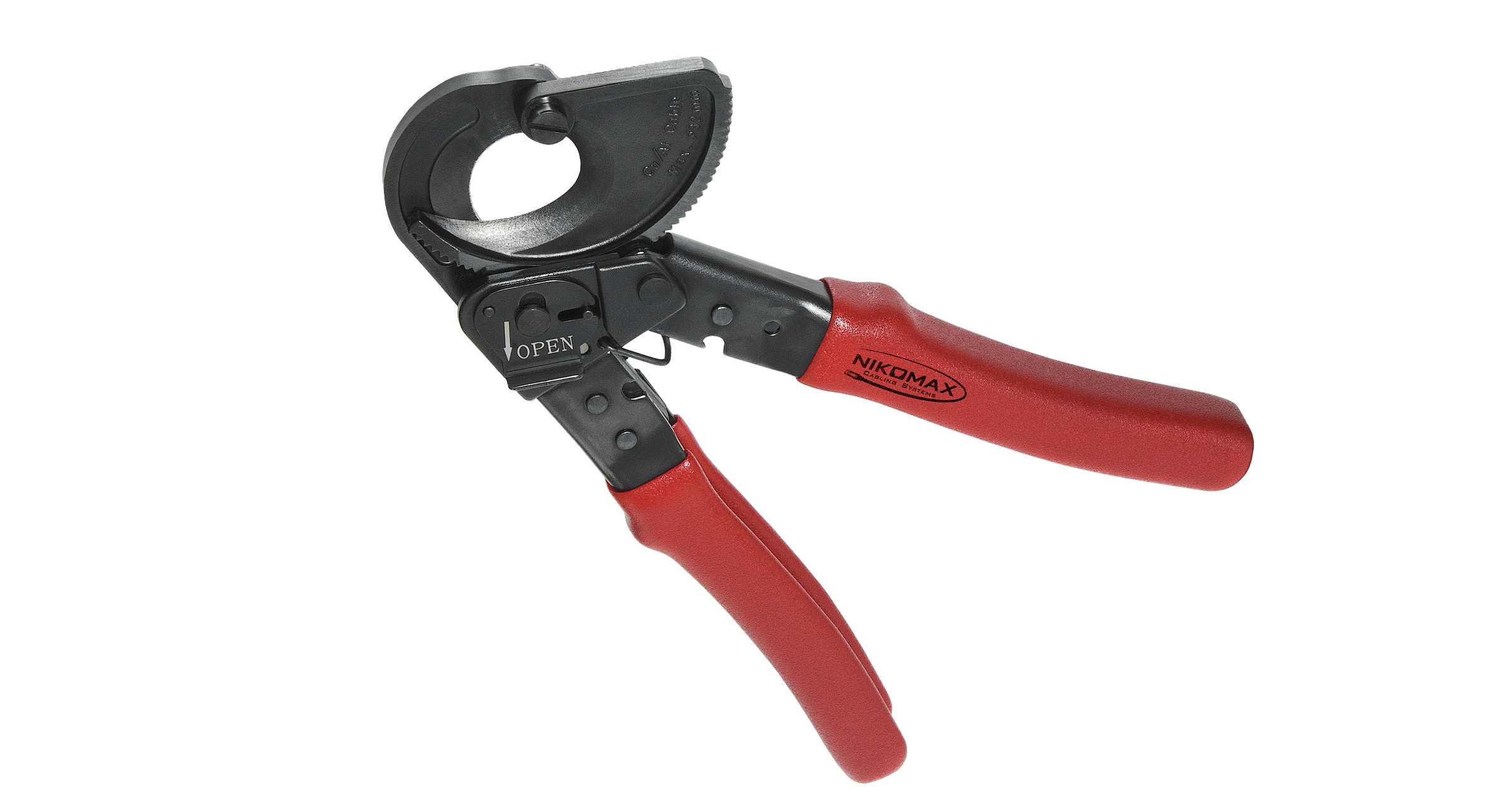 Инструмент NMC-535 снабжен храповым механизмом и предназначен для обрезки медных кабелей диаметром до 32 мм, в том числе многопарных, вплоть до 200-т пар. Также инструмент подходит для силовых кабелей с медной жилой диаметром до 3,5 мм, либо с алюминиевой жилой диаметром до 5 мм. Инструмент не предназначен для обрезки кабелей со стальными жилами, несущими тросами, броней и прочими силовыми элементами из твердых металлов.