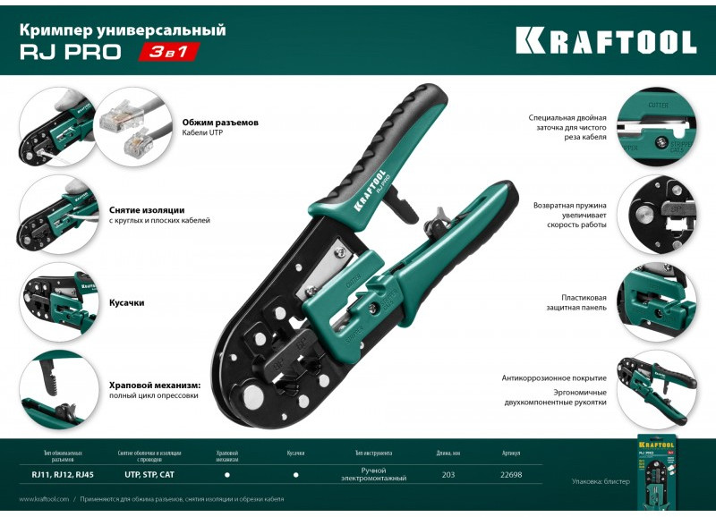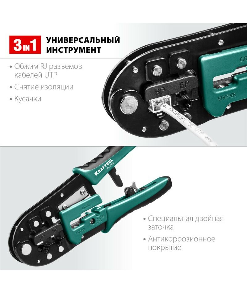 Кримпер универсальный KRAFTOOL RJ-Pro RJ45, RJ11/RJ12 [22698]