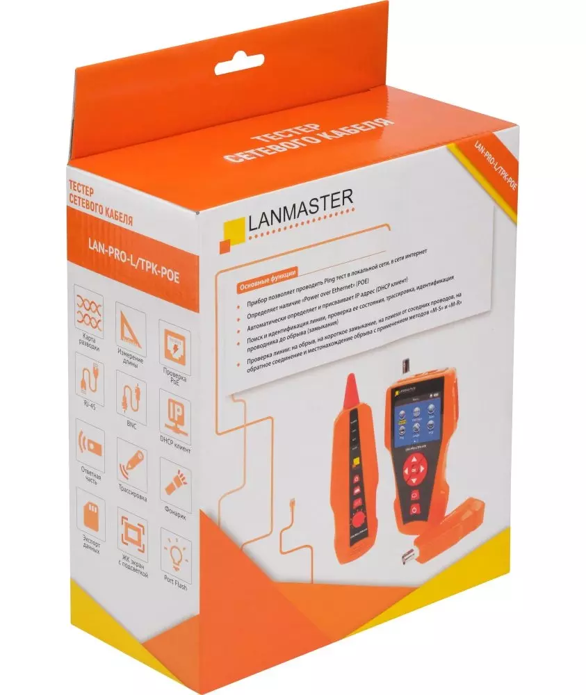 Тестер кабельный Lanmaster LAN-PRO-L/TPK-POE оранжевый/черный