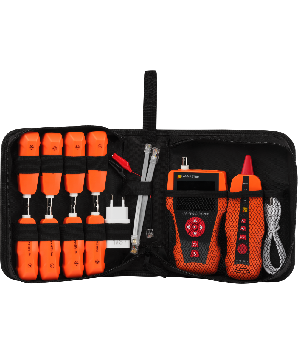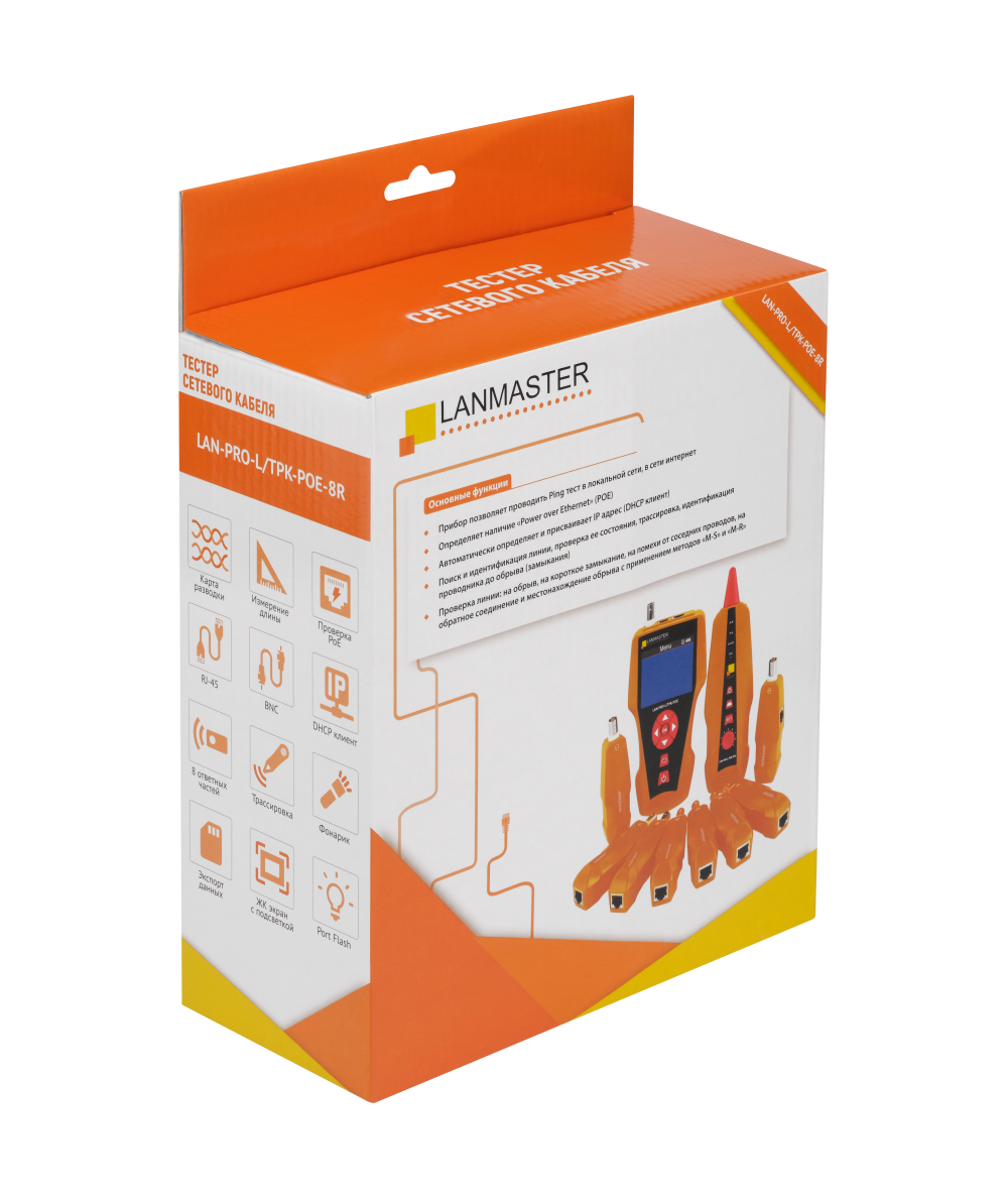 Тестер кабельный Lanmaster LAN-PRO-L/TPK-POE-8R оранжевый/черный