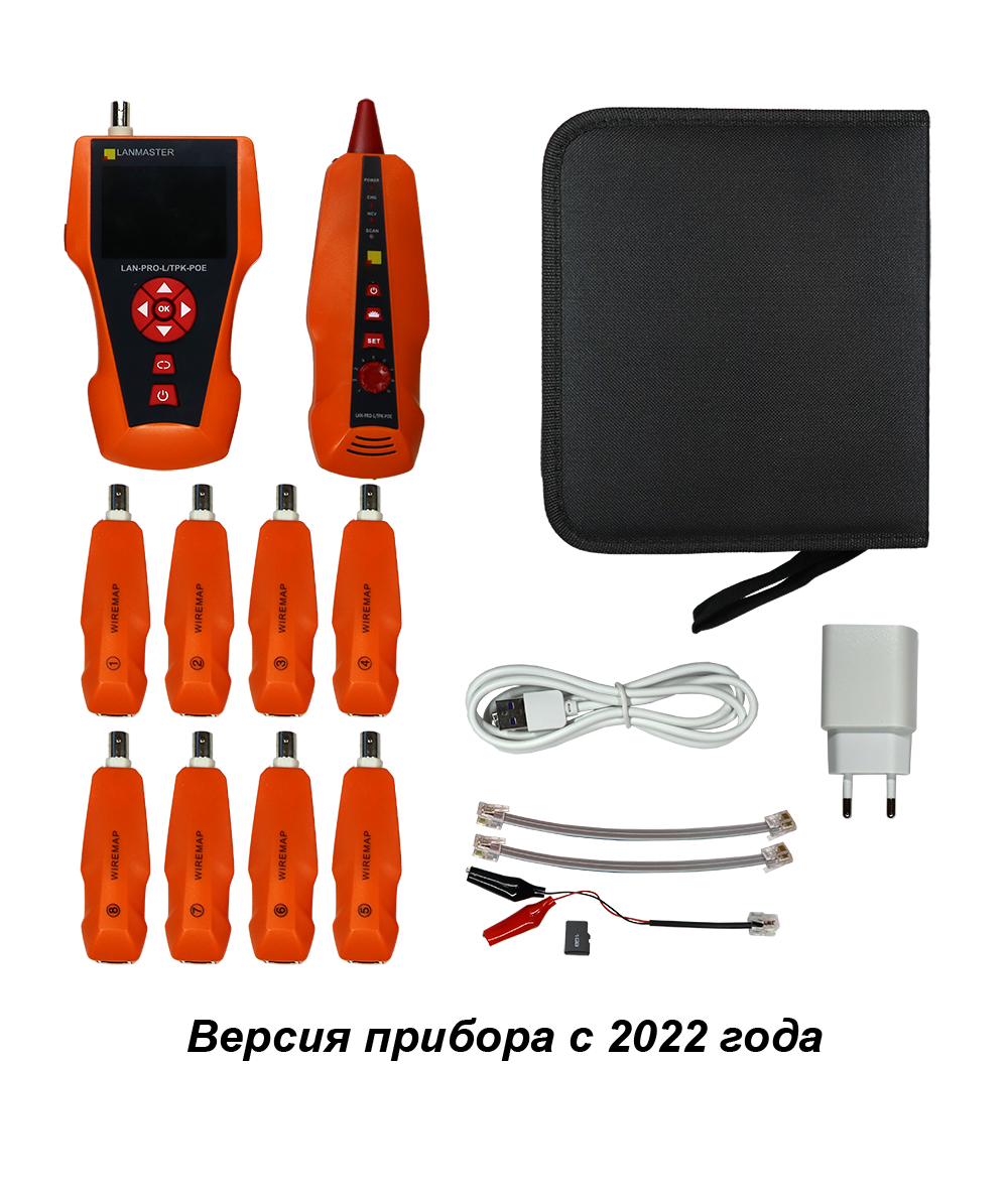 | Комплект поставки | Главный блок, индуктивный щуп, ответная часть - 8 шт., USB micro шнур, зарядное устройство, кабель RJ45, кабель RJ11, кабель RJ11 - крокодилы, карта памяти, сумка-чехол на ремне, инструкция по эксплуатации. |