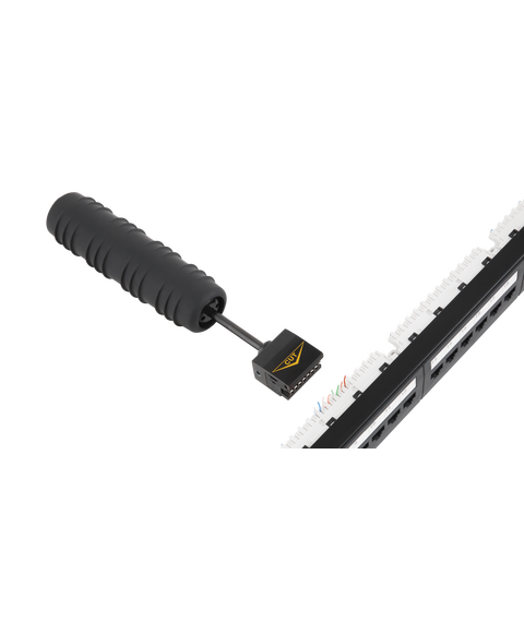 Монтажный инструмент NMC-315DR предназначен для одновременной заделки нескольких пар проводов в кроссы 110 типа. Инструмент представляет собой механическое устройство, предназначенное для механической фиксации жил проводов в контактах кроссового блока или коннектора. Инструмент снабжен съемными взаимозаменяемыми насадками и ударным механизмом. На насадках имеются ножи для обрезки излишков длин проводов после их фиксации в контактах. Вставка с ножами может быть выставлена в рабочую позицию, либо убрана ножами внутрь: для простой фиксации проводов, без их обрезки. NMC-315DR поставляется с насадкой на 5 пар, предназначенной для заделки многопарных кабелей в 110-е блоки. Для заделки четырехпарных кабелей удобнее использовать насадку NMC-TA15B на 4 пары (приобретается отдельно). Данная насадка не врезается лишний раз в соседние IDC контакты, продлевая их срок службы, что особенно актуально для коммутационных панелей.