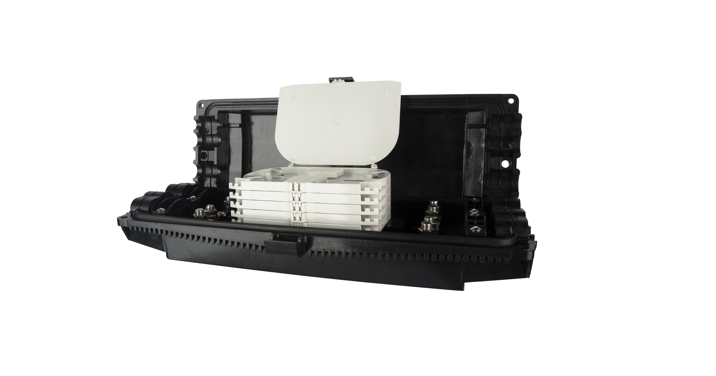 Герметизирующая прокладка из специально разработанного материала и герметизирующая лента исключают попадание внутрь влаги и пыли на долгое время. Внутри муфты можно установить до четырех сплайс-кассет из прочного пластика. Каждая сплайс-кассета скреплена с предыдущей поворотным креплением, что обеспечивает быстрый доступ и удобство при сборке муфты.