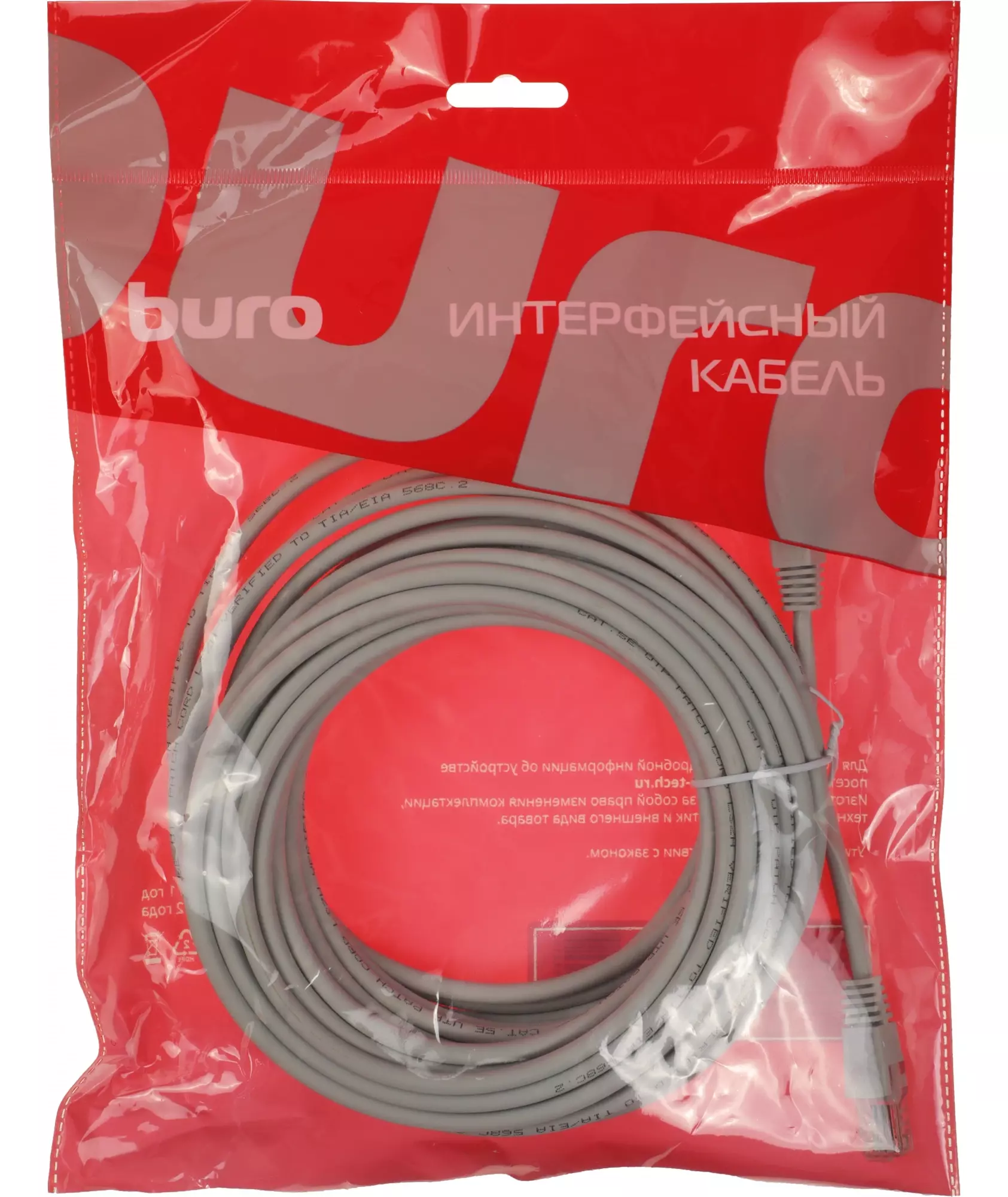 Патч-корд BURO 1Гбит/с UTP 4 пары cat.5E 10м серый RJ-45 (m)-RJ-45 (m) [UTP-5E-10M-G-LSZH]