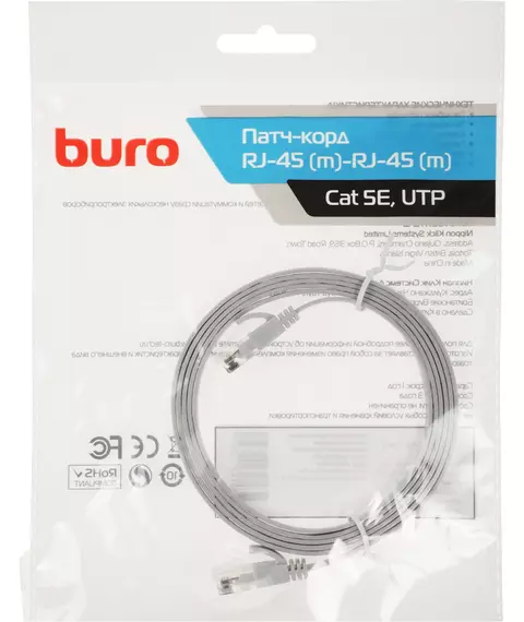 Патч-корд BURO Flat 10Гбит/с UTP 4 пары cat.5E Cu molded 1.5м серый RJ-45 (m)-RJ-45 (m) [BU-5E-FLAT-1.5M-G]