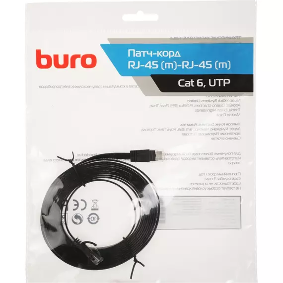 Патч-корд BURO Flat 10Гбит/с UTP 4 пары cat.6 Cu molded 3м черный RJ-45 (m)-RJ-45 (m) [BU-C6-FLAT-3M-B]