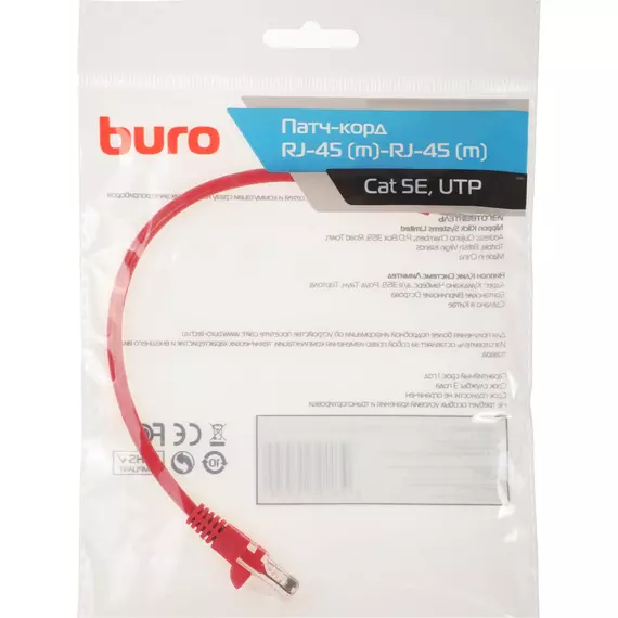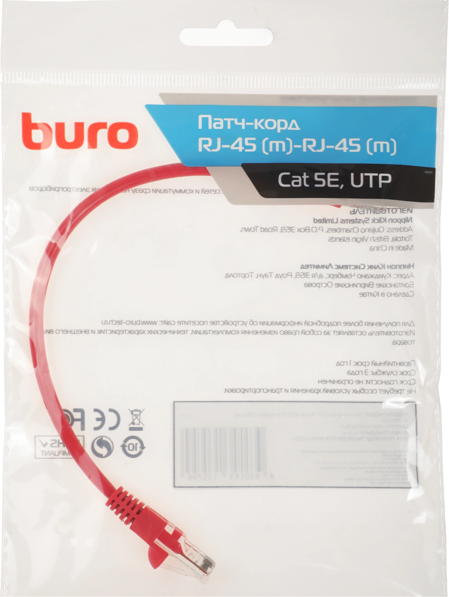 Патч-корд BURO UTP 4 пары cat.5E CCA molded 0.25м красный RJ-45 (m)-RJ-45 (m)