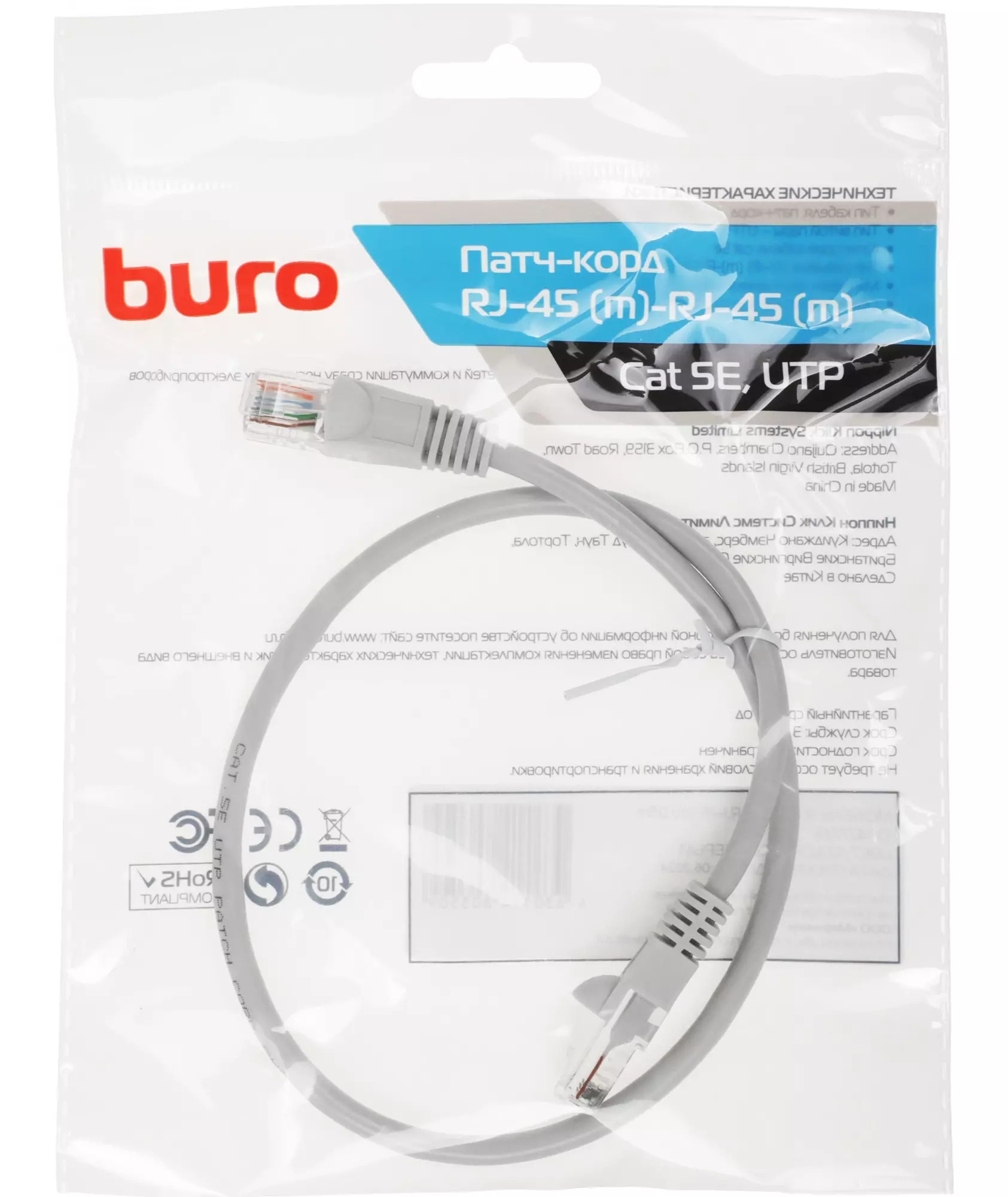Описание BURO UTP 4 пары cat.5E CCA molded 0.5м [UTP-5E-0.5M-G]