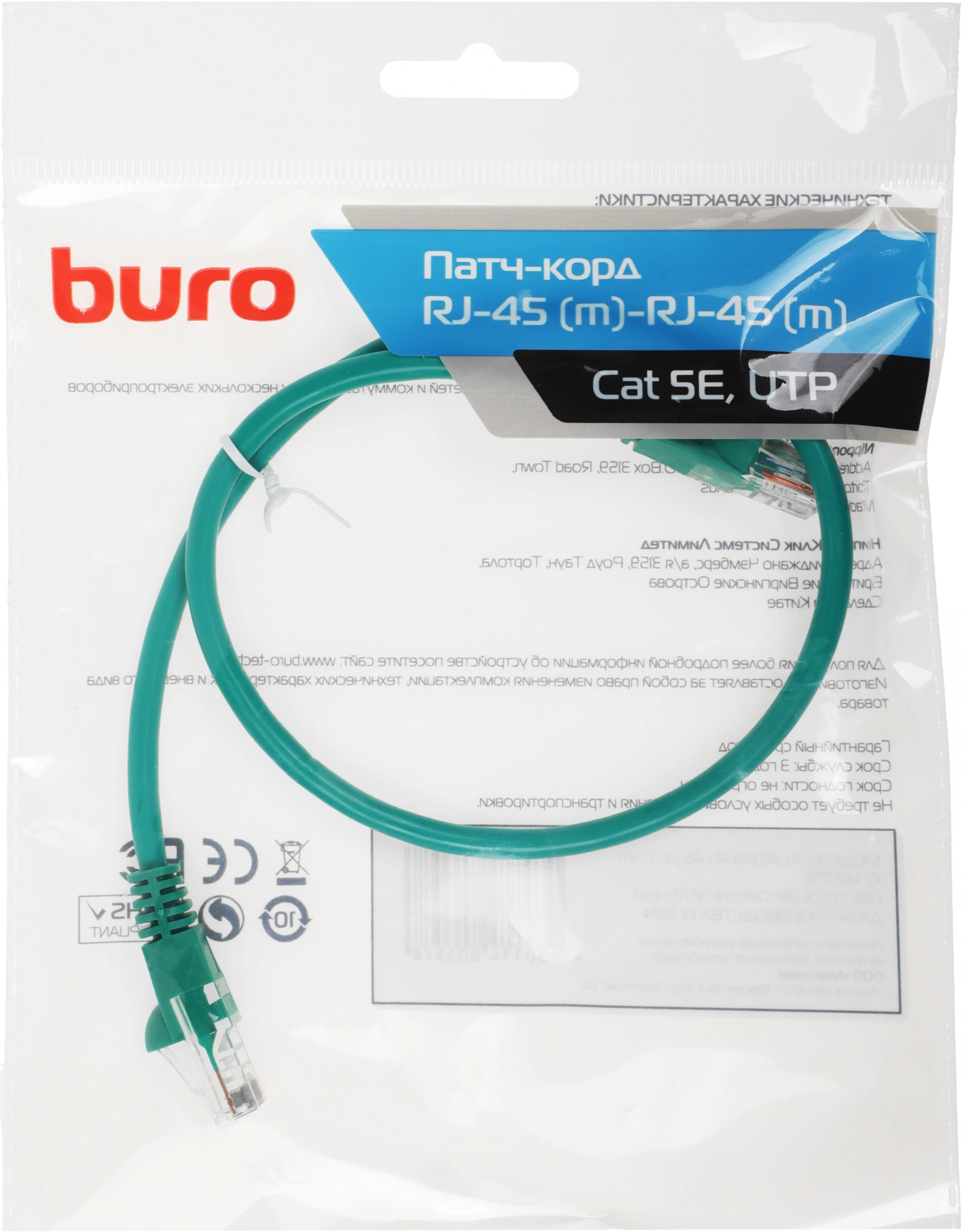 Описание BURO UTP 4 пары cat.5E CCA molded 0.5м [UTP-5E-0.5M-GR]