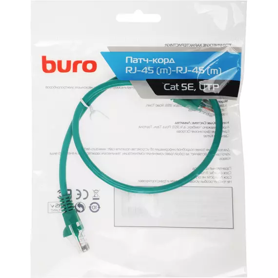 Патч-корд BURO UTP 4 пары cat.5E CCA molded 0.5м зеленый RJ-45 (m)-RJ-45 (m) [UTP-5E-0.5M-GR]