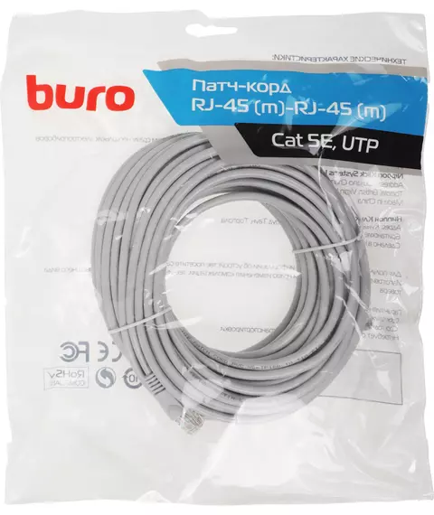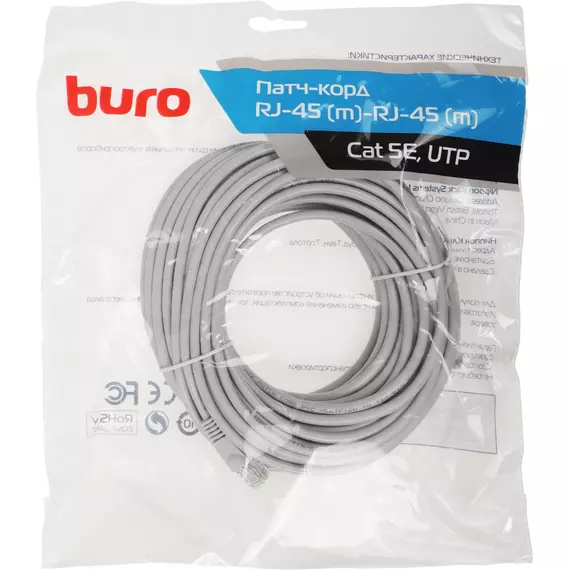 Патч-корд BURO UTP 4 пары cat.5E CCA molded 15м серый RJ-45 (m)-RJ-45 (m) [UTP-5E-15M-G]