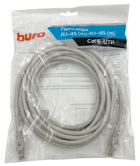 Патч-корд BURO UTP 4 пары cat.6 CCA molded 5м серый RJ-45 (m)-RJ-45 (m) [UTP-6-5M-G]