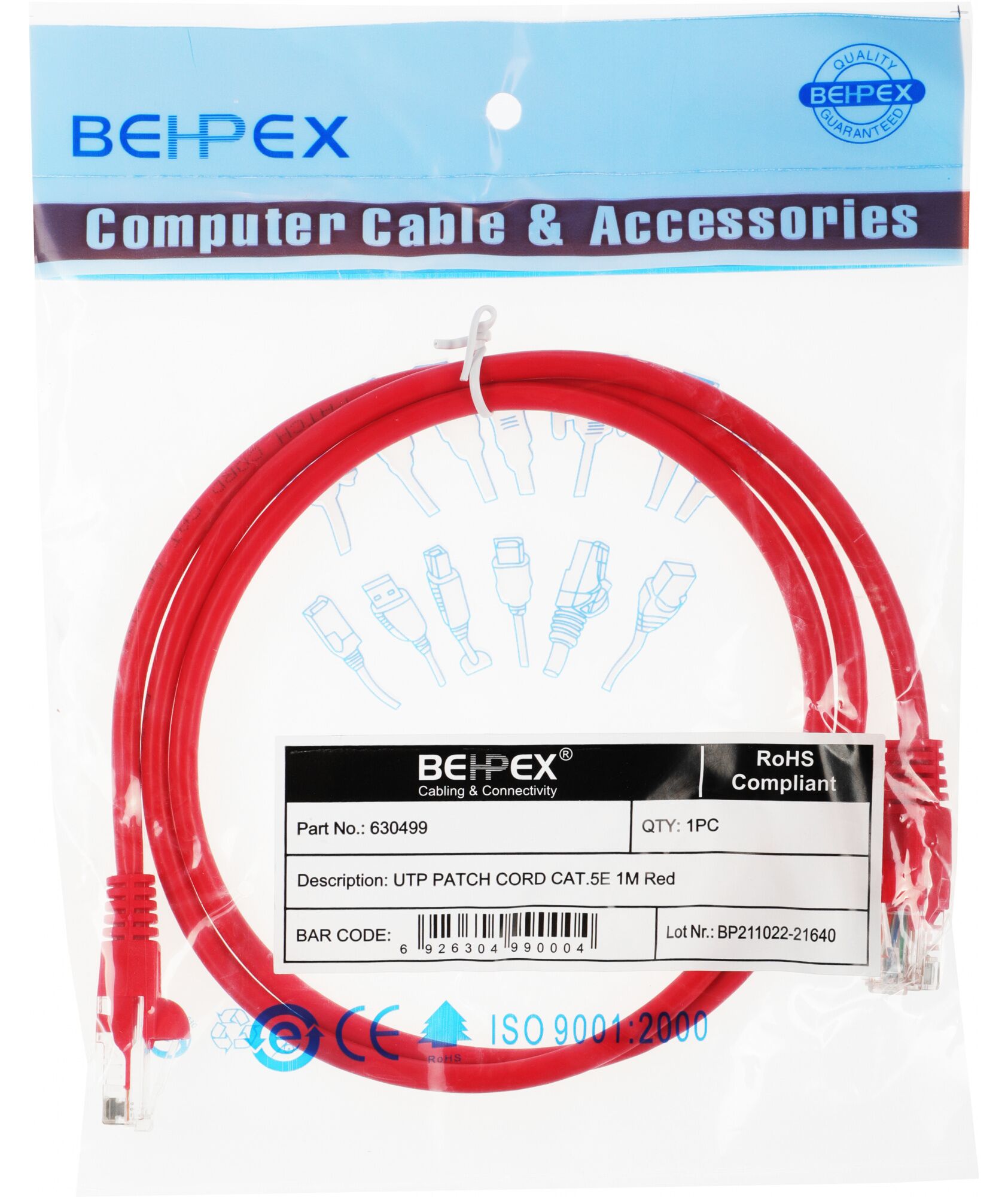 Патч-корд cat.5E molded 1м красный RJ-45 (m)-RJ-45 (m)