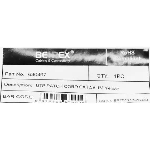 Патч-корд cat.5E molded 1м желтый RJ-45 (m)-RJ-45 (m)