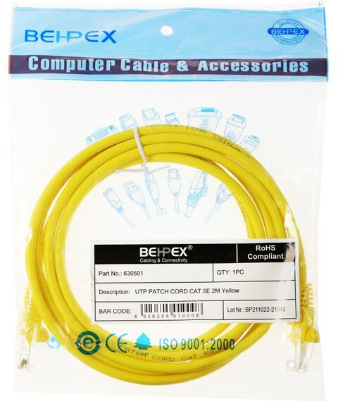 Патч-корд cat.5E molded 2м желтый RJ-45 (m)-RJ-45 (m)