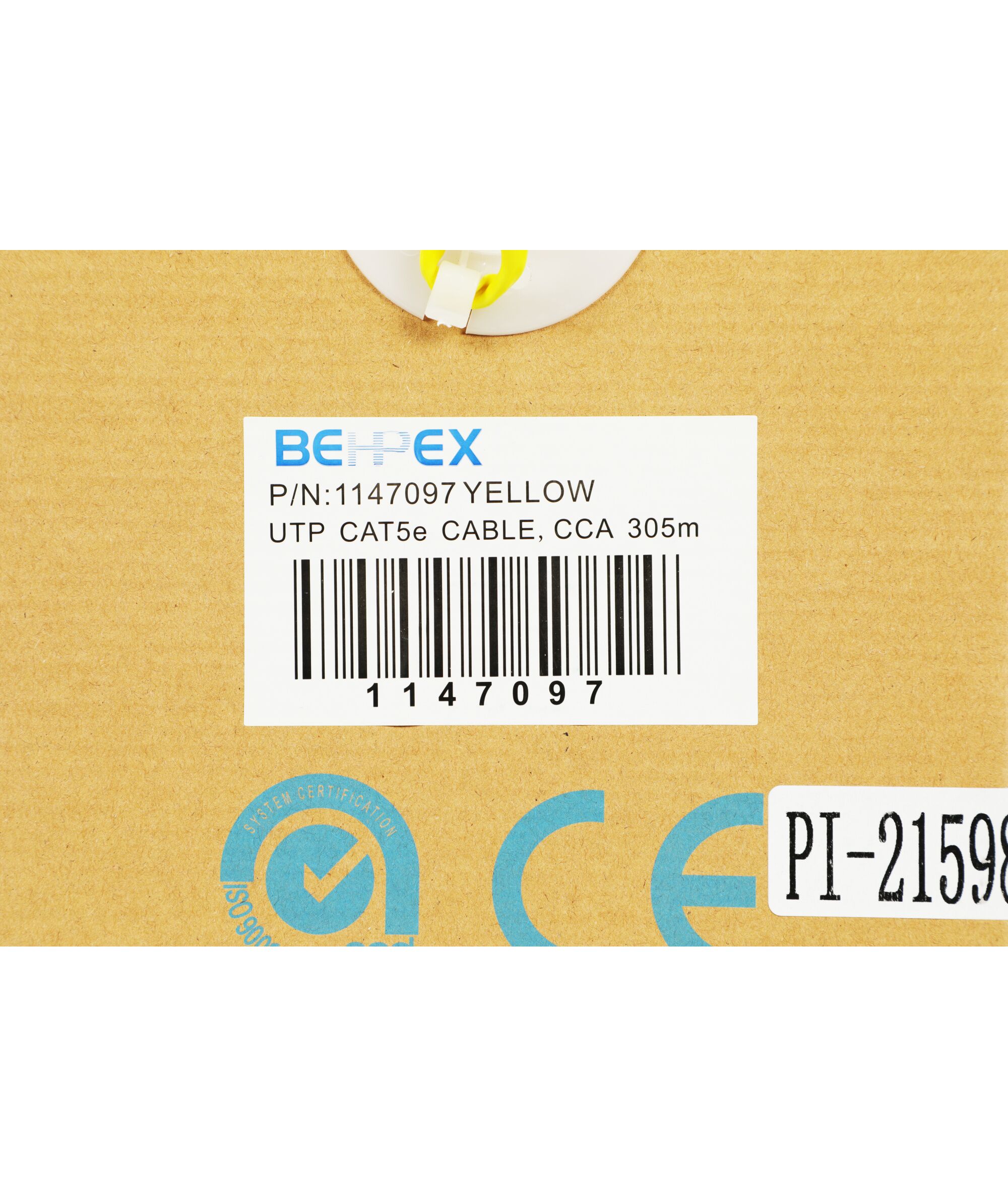 Кабель сетевой cat.5E solid 0.45мм 4 пары, CCA, 305м, желтый