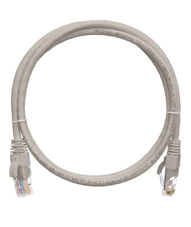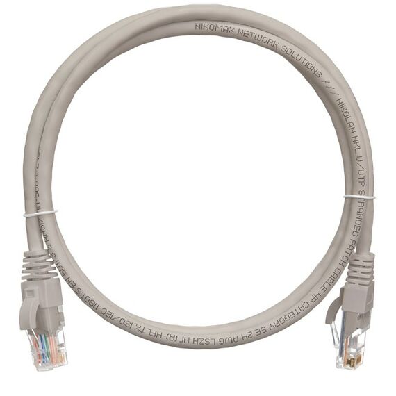 Коммутационный шнур Nikomax NMC-PC4UD55B-100-C-GY U/UTP 4 пары, Кат.5е (Класс D), 100МГц, 2хRJ45/8P8C, T568B, заливной, с защитой защелки, многожильный, BC (чистая медь), 24AWG (7х0,205мм), LSZH нг(А)-HFLTx, серый, 10м