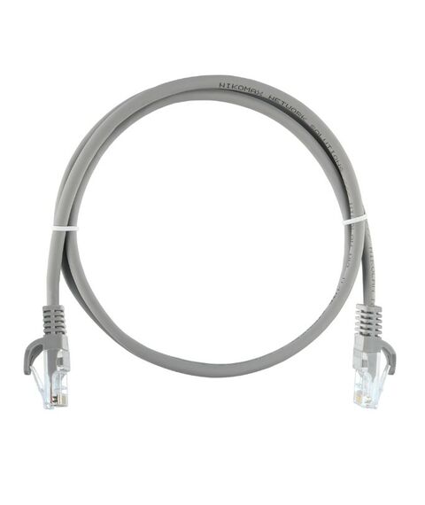 Коммутационный шнур Nikomax NMC-PC4UD55B-ES-010-C-GY Essential Line U/UTP 4 пары, Кат.5е (Класс D), 100МГц, 2хRJ45/8P8C, T568B, заливной, с защитой защелки, многожильный, BC (чистая медь), 25AWG (7x0,175мм), LSZH нг(А)-HFLTx, серый, 1м