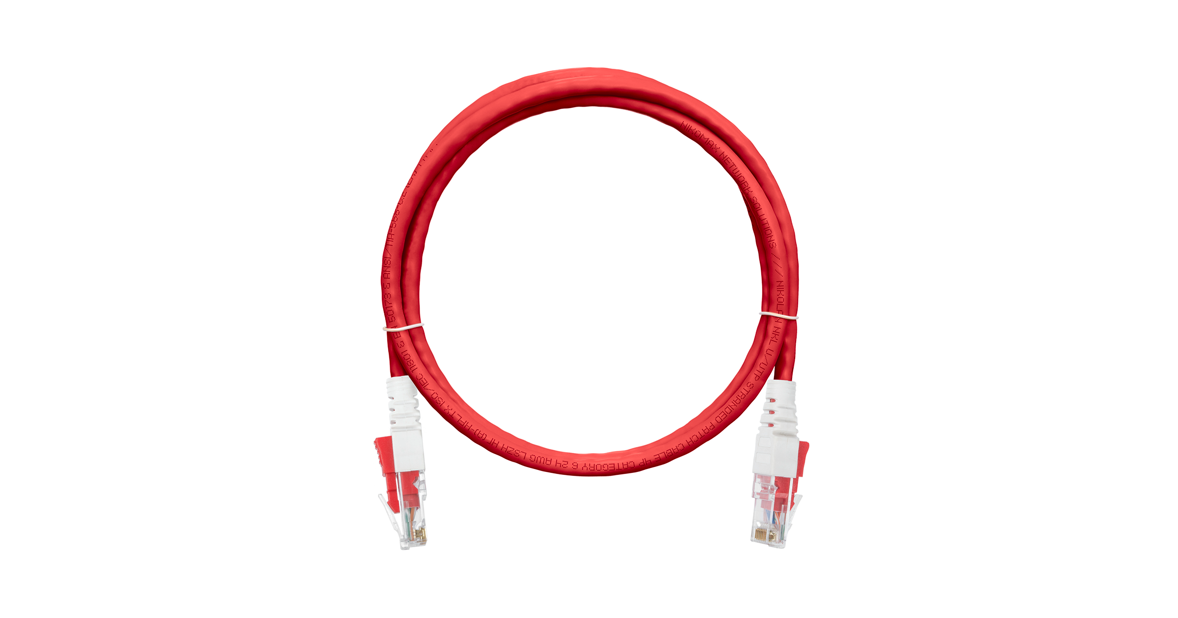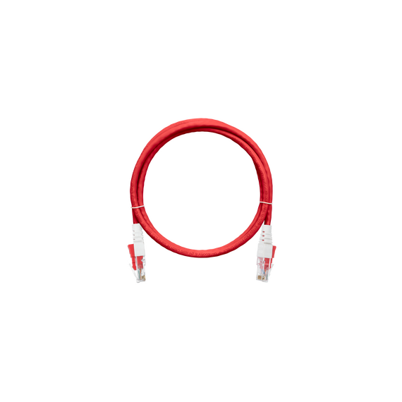 Коммутационный шнур Nikomax NMC-PC4UE55B-010-CS-RD с замком U/UTP 4 пары, Кат.6 (Класс Е), 250МГц, 2хRJ45/8P8C, T568B, многожильный, BC (чистая медь), 24AWG (7х0,195мм), LSZH нг(А)-HFLTx, красный, 1м