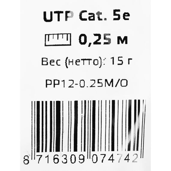 Описание Premier 1000Гбит/с UTP 4 пары cat.5E CCA molded 0.25м [PP12-0.25M/O]