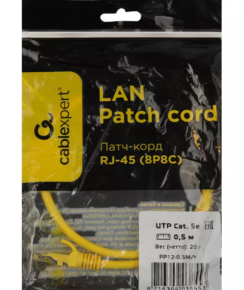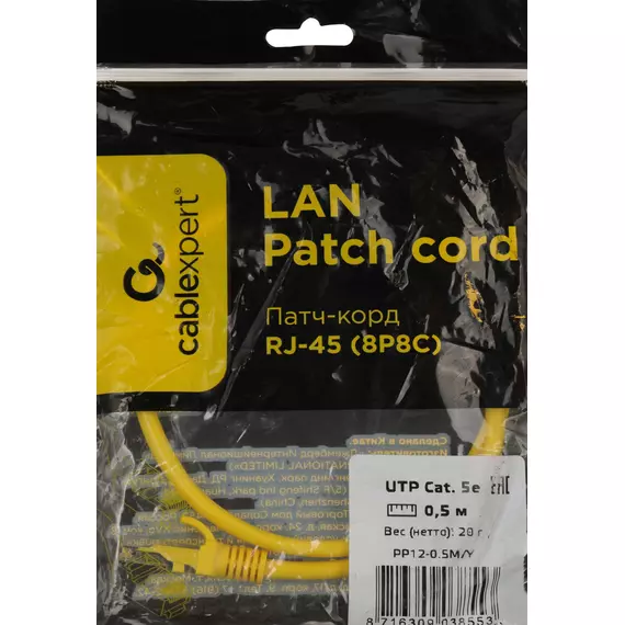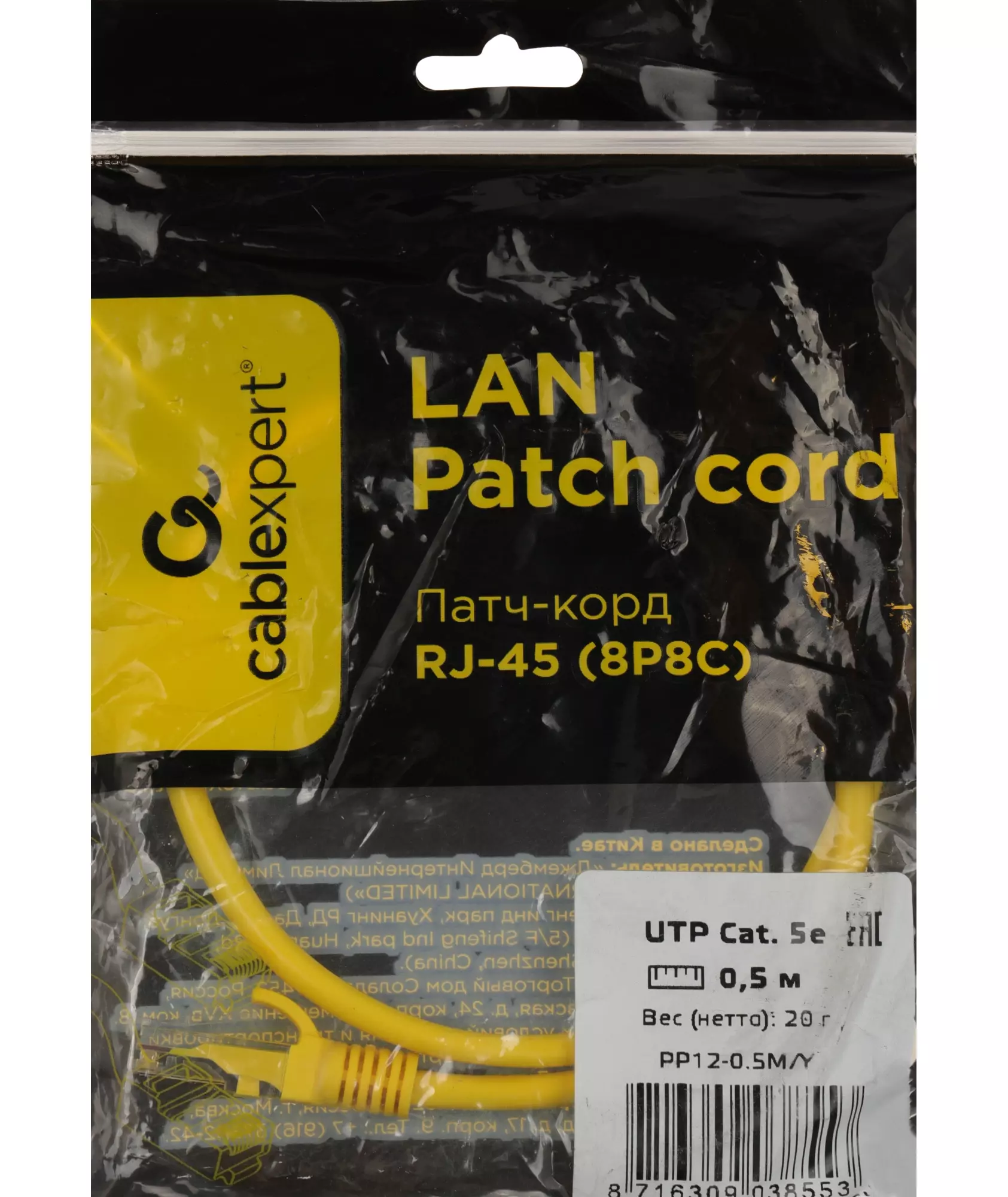 Патч-корд Premier 1000Гбит/с UTP 4 пары cat.5E CCA molded 0.5м желтый RJ-45 (m)-RJ-45 (m) [PP12-0.5M/Y]