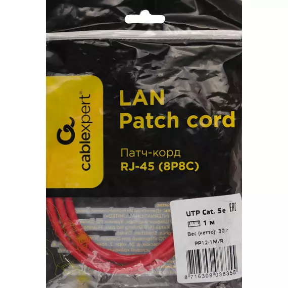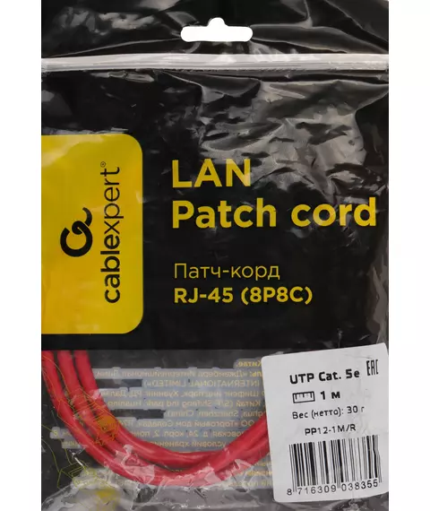 Патч-корд Premier 1000Гбит/с UTP 4 пары cat.5E CCA molded 1м красный RJ-45 (m)-RJ-45 (m) [PP12-1M/R]