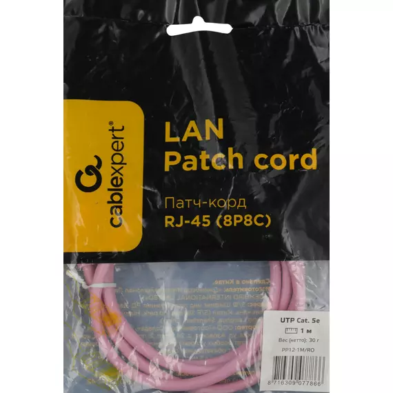 Патч-корд Premier 1000Гбит/с UTP 4 пары cat.5E CCA molded 1м розовый RJ-45 (m)-RJ-45 (m) [PP12-1M/RO]