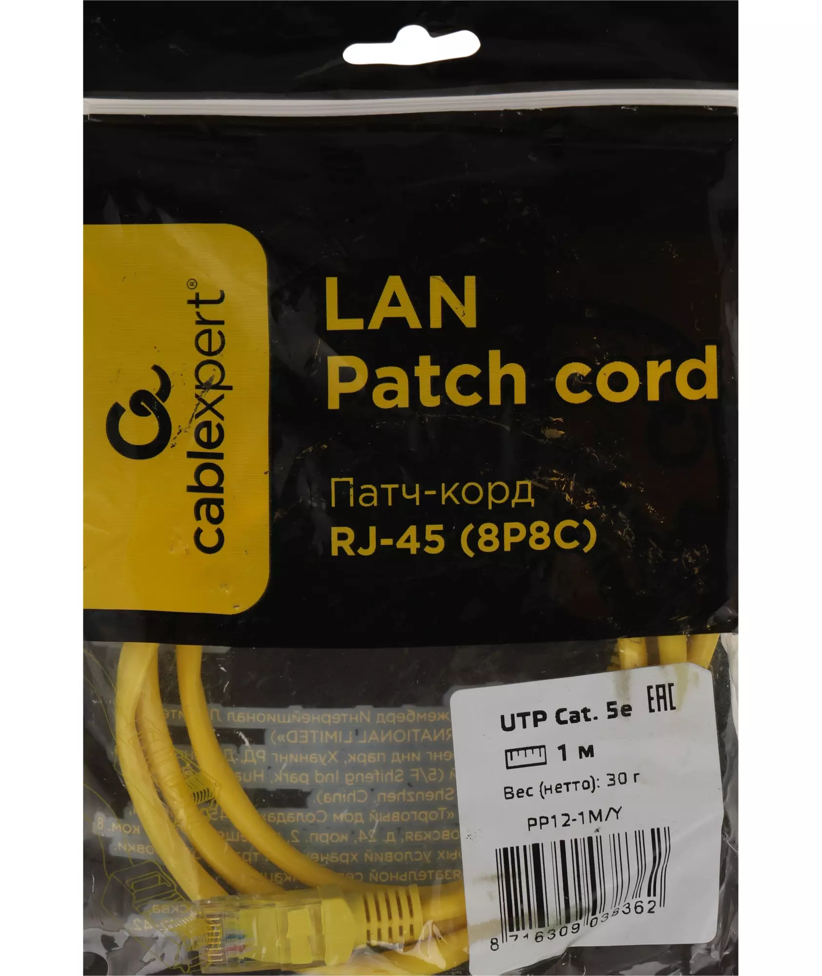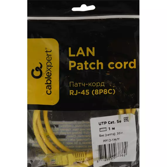 Патч-корд Premier 1000Гбит/с UTP 4 пары cat.5E CCA molded 1м желтый RJ-45 (m)-RJ-45 (m) [PP12-1M/Y]