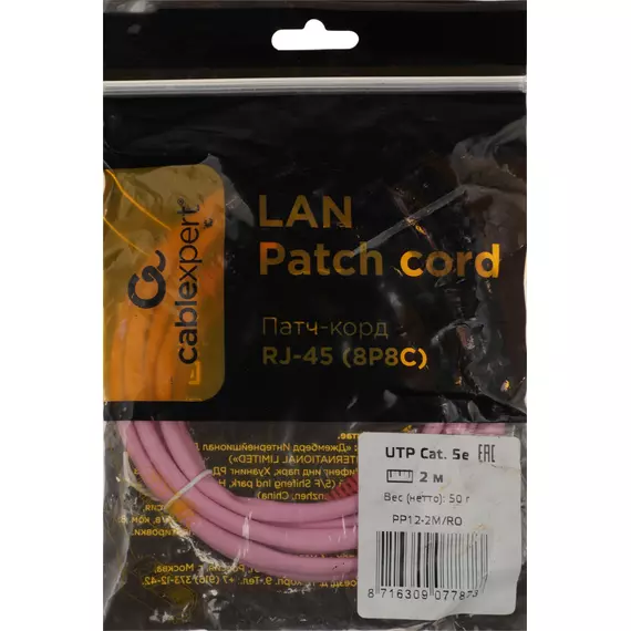 Патч-корд Premier 1000Гбит/с UTP 4 пары cat.5E CCA molded 2м розовый RJ-45 (m)-RJ-45 (m) [PP12-2M/RO]
