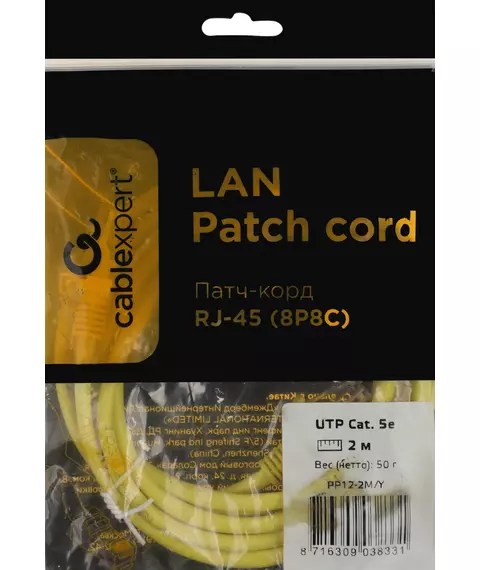 Патч-корд Premier 1000Гбит/с UTP 4 пары cat.5E CCA molded 2м желтый RJ-45 (m)-RJ-45 (m) [PP12-2M/Y]