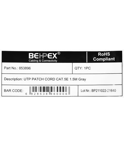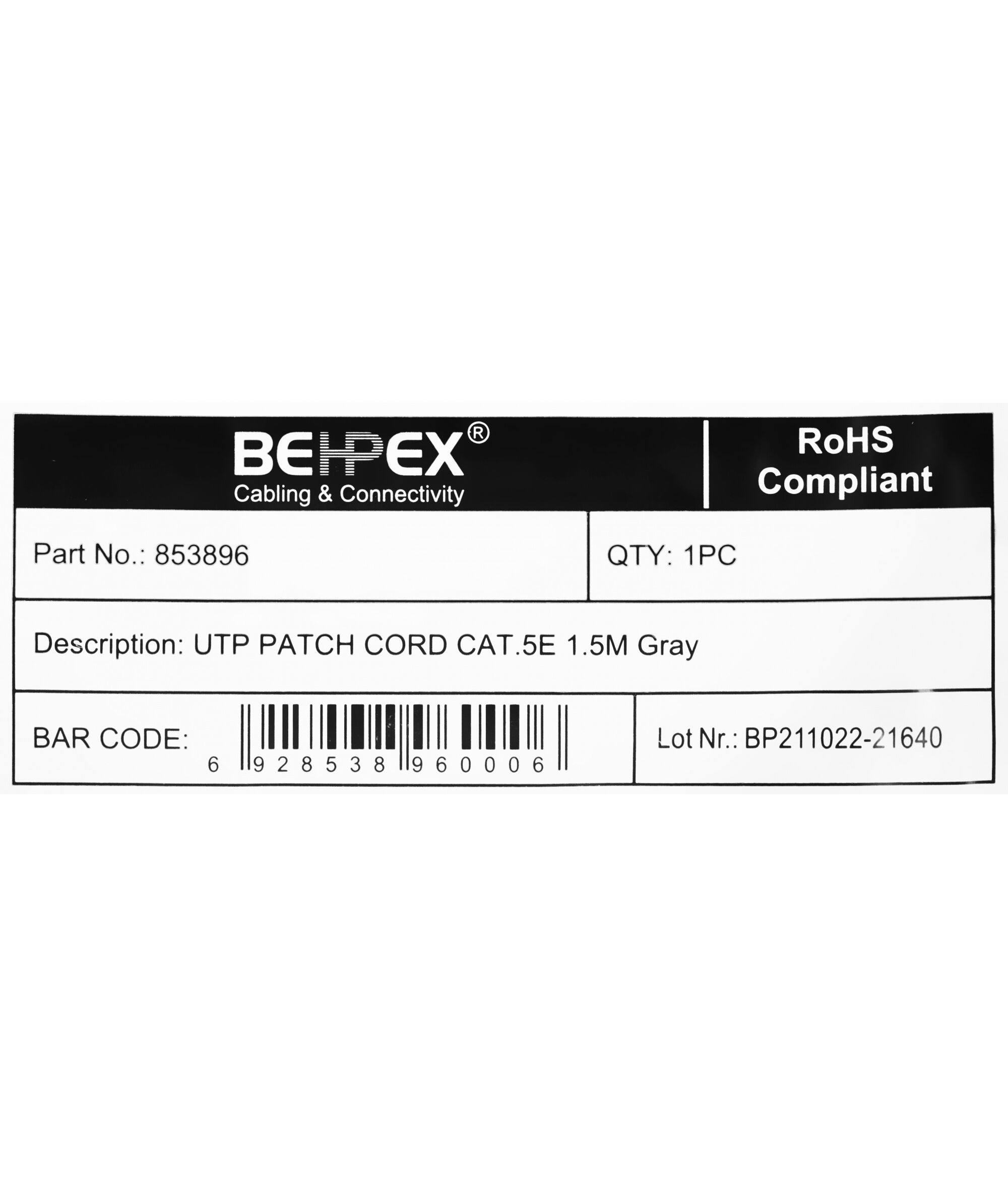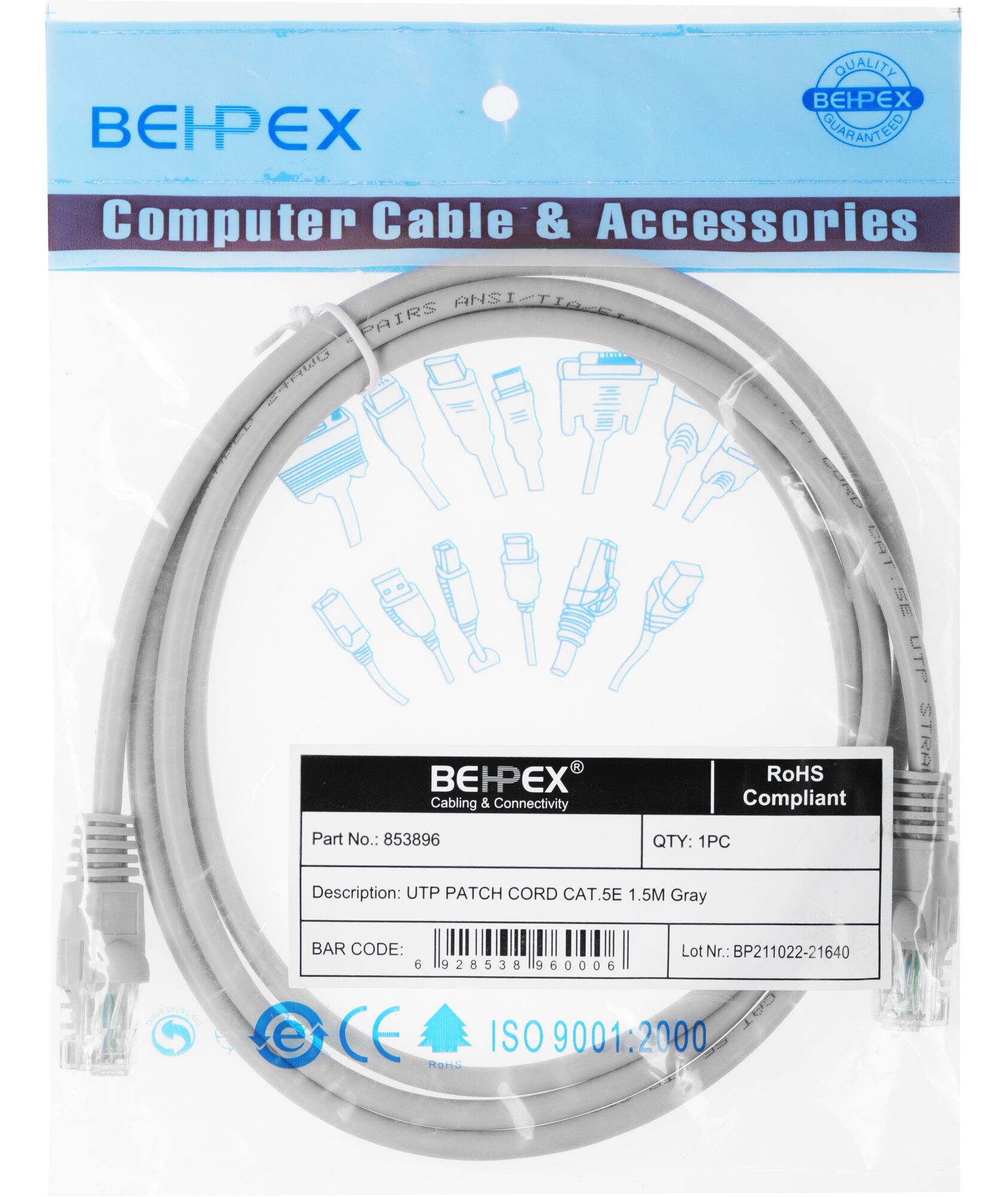 Патч-корд UTP cat.5E molded 1.5м серый RJ-45 (m)-RJ-45 (m)