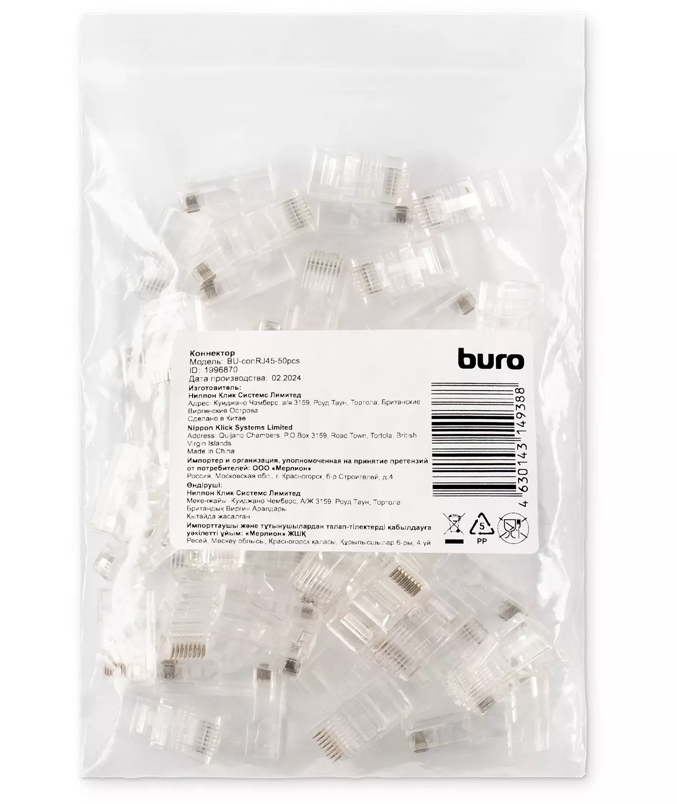 Коннектор BURO BU-CONRJ45-50PCS RJ45 прозрачный упак.:50шт