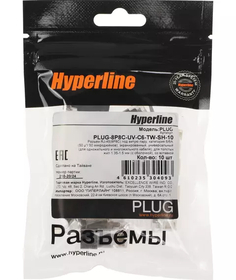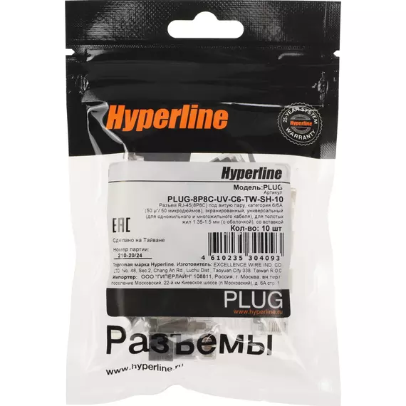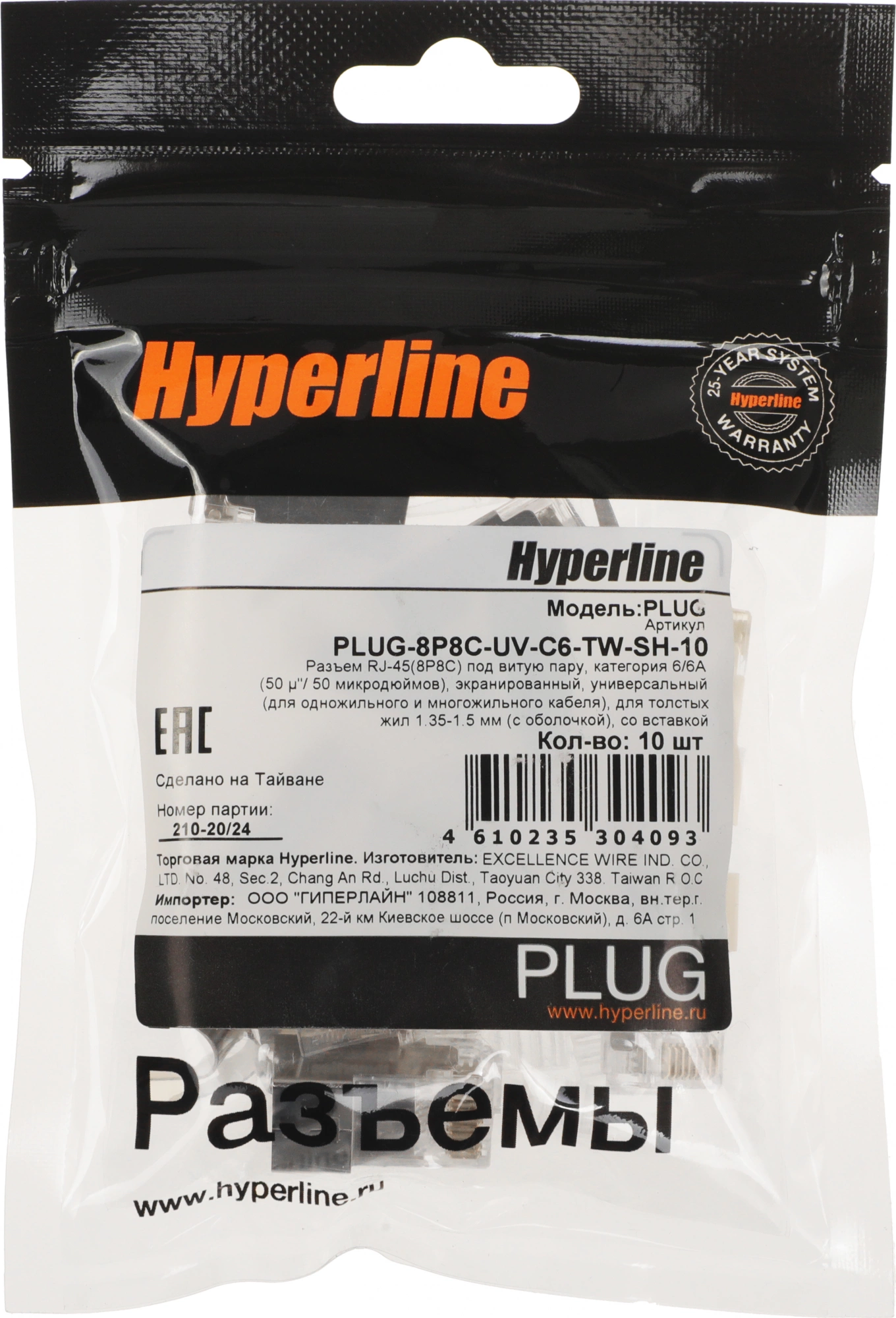 Наличие товара Hyperline PLUG-8P8C-UV-C6-TW-SH-10