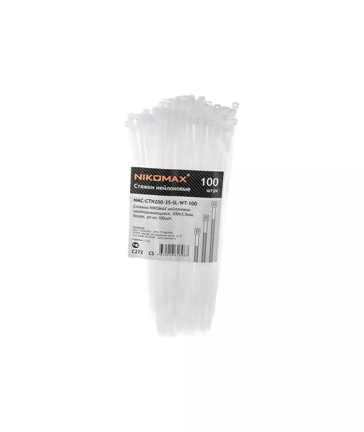 Стяжка нейлоновая Nikomax NMC-CTN200-35-SL-WT-100 неоткрывающаяся, 200х3,5мм, белая, уп-ка 100 шт