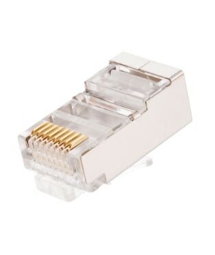 Разъемы (коннекторы) RJ45/8P8C предназначены для оконцевания одножильных и многожильных (патч-кордовых) кабелей при производстве коммутационных шнуров (патч-кордов), а также в ряде случаев при прокладке стационарных кабелей связи, для подключения камер видеонаблюдения и т.д. По типу ножей коннекторы делятся на три основных типа: для оконцевания многожильных кабелей (патч-кордов), для одножильных (стационарных) кабелей и универсальные, подходящие для обоих типов проводников. Использование несоответствующего типа коннектора не гарантирует качественного обжима вследствие неправильного врезания ножей в жилы кабеля и может привести к потери контакта. Для увеличения максимального количества переподключений, общего срока службы и защиты медных контактов разъемов от окисления, на них дополнительно нанесено золотое покрытие. Обычно толщина покрытия составляет 6 или 50 микродюймов, но может отличаться и в меньшую сторону в более дешевом ценовом сегменте. По конструкции коннекторы бывают со вставками и без. На вставке, как правило, удобнее разводить жилы, хотя многие монтажники предпочитают более простые модели с направляющими желобками, без вставок. Рекомендуется также использовать защитные колпачки, которые увеличивают срок службы разъема, повышают удобство работы и придают обжатому кабелю законченный вид.
