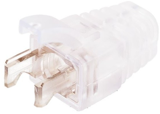 Защитный колпачок Nikomax NMC-RJBOOT55B-TR-100 для коннекторов RJ45, под кабели диаметром 5,5мм, с защитой защелки, прозрачный, уп-ка 100шт.
