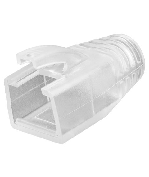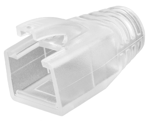 Защитный колпачок Nikomax NMC-RJBOOT75T-TR-100 для коннекторов RJ45, под кабели диаметром 7,5мм, с защитой защелки, прозрачный, уп-ка 100шт.