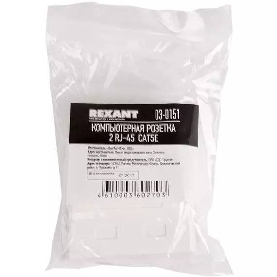 Розетка Rexant 03-0151 комп.RJ45 2 кат.5E UTP бел.