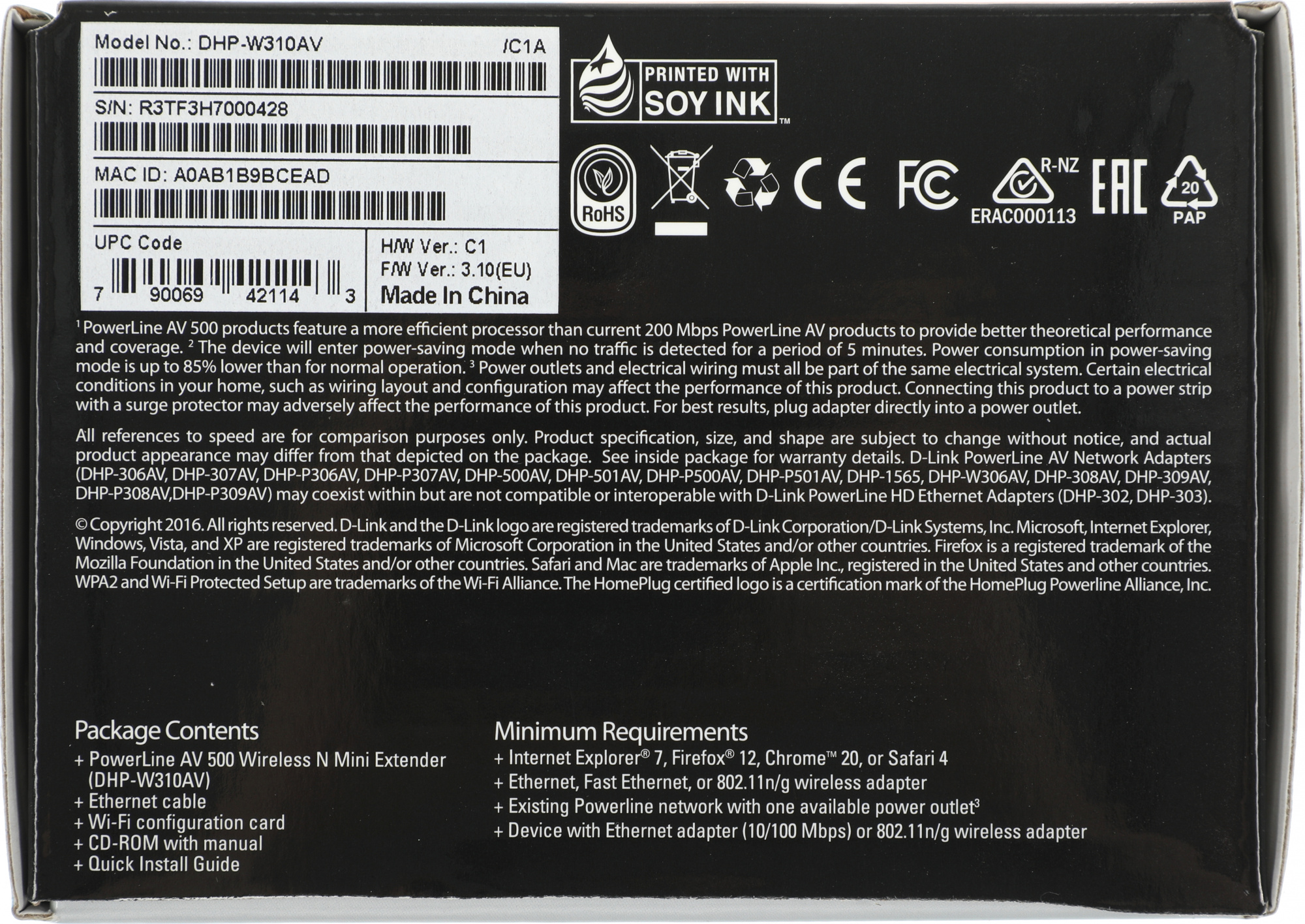 | Особенности | Беспроводной PowerLine-адаптер N300 с поддержкой HomePlug AV |